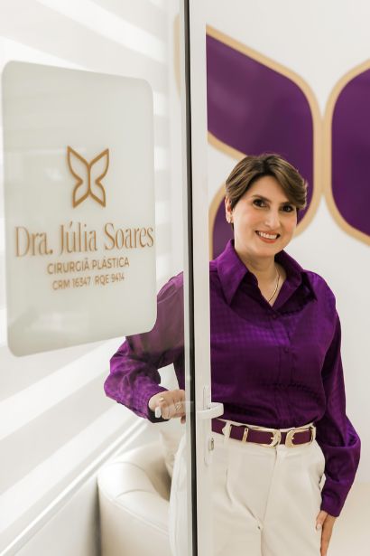 A Dra. Júlia Soares é médica especialista em Cirurgia Plástica, CRM 16347 | RQE 9414, e membro da Sociedade Brasileira de Cirurgia Plástica. Formou-se em Medicina pela Universidade do Sul de Santa Catarina (UNISUL) e realizou 2 anos de residência em Cirurgia Geral no Hospital de Clínicas da Universidade Federal do Paraná (UFPR). Concluiu sua formação em Cirurgia Plástica, com duração de 3 anos, em São Paulo/SP, no Serviço de Cirurgia Plástica Professor Dr. Oswaldo de Castro.